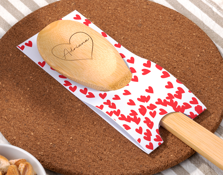 • Cucharón de madera personalizado. • Tarjeta Recordatoria.