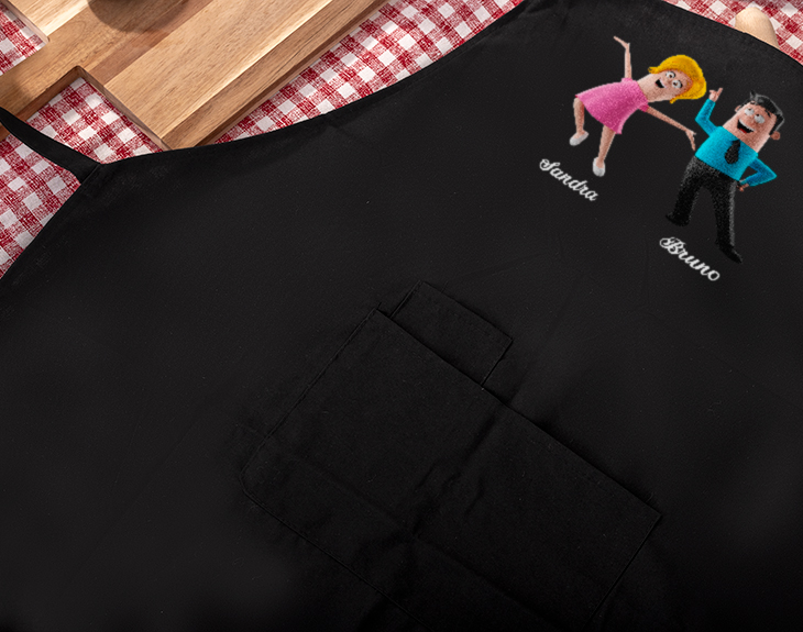 Para muchos, la familia y la cocina es una combinación perfecta. Si la tuya es una de las familias más divertidas del mundo, este es vuestro regalo original: un delantal personalizado con personajes de nuestra familia 3D. Tienes 3 colores para arrasar en la cocina. Importante: a partir de 6 personajes, se distribuirán en dos filas. Es decir: - Familia de 6 personajes: 3 en la fila superior, y 3 en la inferior. - Familia de 7 personajes: 4 en la fila superior, y 3 en la inferior. - Familia de 8 personajes: 4 en la fila superior, y 4 en la inferior -Medidas aproximadas Delantal de colores: 89x65 cm Delantal blanco: 84x57 cm Material del delantal blanco: 100% poliéster. Material del delantal de color: 65% poliéster, 35% algodón.