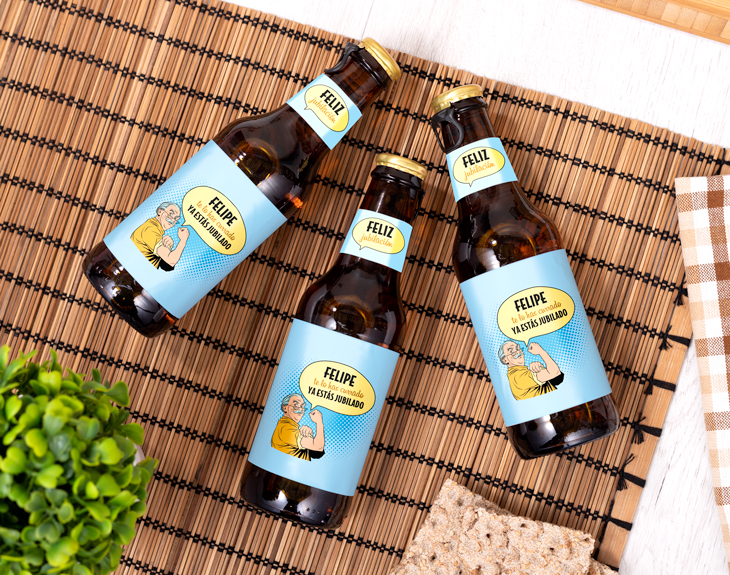 • Empezamos con nuestras cervezas personalizadas, seis botellines de Alhambra Especial totalmente personalizados (etiqueta y caja de cartón) con el nombre y el formato que nos digas. Tenemos seis modelos de personalización distintos, para tu pareja, para el día del padre, para un cumpleaños y muchos más.