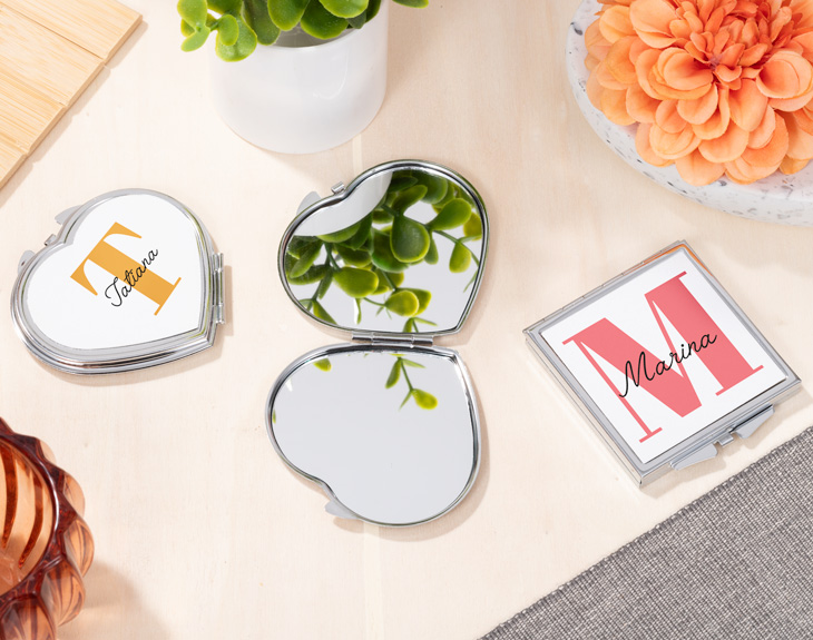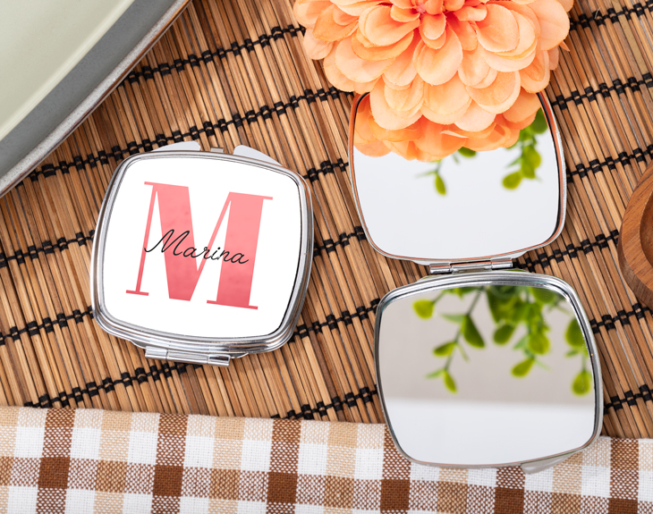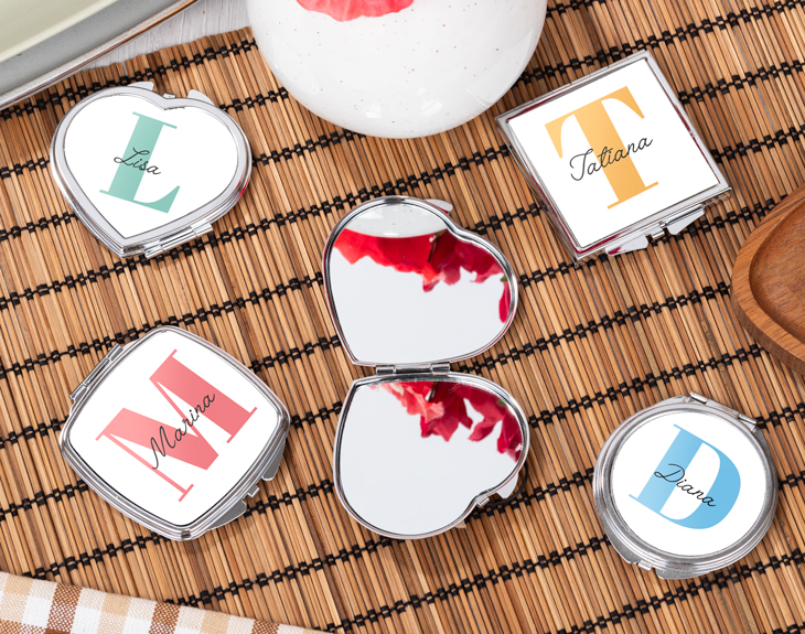Seguro que tú también conoces a esa persona que siempre tiene que estar perfecta. Sorpréndela con un regalo único que le dejará sin palabras: ¡su propio espejito personalizado! El accesorio perfecto que no podrá faltar en su bolso cada vez que salga de casa porque es ideal para mirarse, retocarse el maquillaje o lo que necesite. ¡Es lo más! Si esa persona no puede salir de casa sin un espejito como este, triunfa en cualquier ocasión especial con este original regalo. Un detallito de lo más mono y útil porque gracias a su tamaño es perfecto para guardarlo en cualquier sitio sin que ocupe nada. No te darás cuenta de que lo llevas pero siempre estará listo para que lo uses. Pero lo mejor es que podrás personalizar este espejito con un diseño que conquistará todas las miradas. Elige la forma que más te guste y añade el producto al carrito. Una vez ahí, podrás completar este diseño con la inicial y el nombre que tú quieras y triunfar con esa persona tan especial y coqueta. ¡Es para dejar sin palabras! Medidas de los espejitos: -Corazón: 6,5 x 7 x 1 cm. -Redondo: 6,3 x 1 cm. -Cuadrado: 6 x 6 x 1 cm. -Cuadrado con bordes redondos: 6,5 x 6.5 x 1 cm.