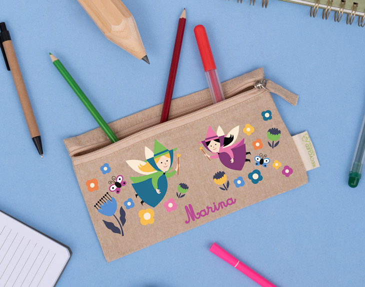 Este nuevo curso, tus hijos van a aprender muchas cosas: matemáticas, ciencias naturales, ballet... ¿Por qué no enseñarles también a cuidar el medio ambiente de una manera práctica en lugar de con tanta teoría? En su día a día podrán ver que es factible vivir de manera responsable y seguir disfrutando de lo mejor. ¡Ya verás como les encanta este estuche de algodón reciclado personalizado! De hecho, su suave tela de varios colores a elegir ocupa menos espacio que un estuche de plástico tradicional. Tan sostenible como bonito, este estuche de colores con nombre y diseño está pensado para esa pequeña bailarina que sueña con triunfar en 'El lago de los Cisnes'. Anímala a perseguir su sueño cuando más lo necesite: estudiando en clase o en casa. En todos esos lugares, podrá tener su nombre escrito junto a este monísimo personaje sobre su propio estuche rectangular. ¡Nadie tendrá uno como el suyo! Las actividades extraescolares son de lo que más anima a los alumnos, así que este puede ser un muy necesario regalo original para la vuelta al cole. Con cremallera incluida y etiqueta de sostenibilidad garantizada. Material: algodón reciclado. Medidas: 21x12,5 cm.