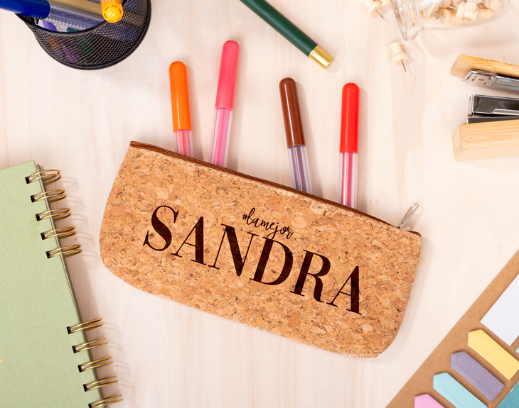 Ahora que tu hijo ha comenzado el cole, tener un detalle con él le vendrá de maravilla para motivarlo con su nueva rutina. Por eso, este estuche de corcho aglomerado es algo que no le puede faltar, le servirá para guardar el material escolar como los bolis, rotuladores, lápices… ¡Todo lo necesario! Sin duda, este estuche es un regalo muy original para la vuelta al cole. Además, es personalizable, podrás escribir el nombre que tú quieras y escribir un mensaje utilizando el hashtag, como si fuera una red social. Seguro que hay un montón de cosas que te gustaría decir a esa persona tan especial. Personalizar este estuche de corcho aglomerado es súper sencillo. El primer paso a seguir consiste en añadir el producto al carrito y entrar al área de personalización. Una vez ahí, puedes escribir el nombre que quieras junto con un hashtag especial. Sin duda, a esa persona le hará muchísima ilusión. Todo lo demás es cosa nuestra y pronto estará listo para regalar. Medidas: 21cm x 10cm.