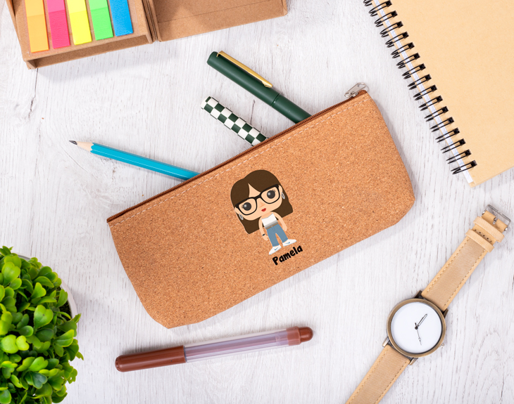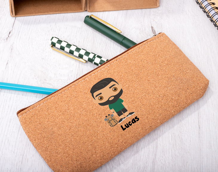 Si estás cansado de llevar siempre el mismo estuche a clase, ha llegado el momento de cambiarlo. Nuestro estuche de corcho nature es algo que no te puede faltar. Podrás guardar todo lo necesario como rotuladores, lápices, bolígrafos… Además, estrenar cosas nuevas siempre nos hace mucha ilusión, por eso este estuche te motivará para ir a clase y enseñarlo a todos tus compañeros. ¡Será la envidia de la clase! Sin duda, lo mejor de este estuche de corcho nature es que es personalizable. Esto quiere decir que tú eres quien diseña a este personaje Tinok como tú quieras. Hay un montón de accesorios y rasgos diferentes para elegir, seguro que consigues que se te parezca. ¡Tendrás tu propio personaje Tinok! También se puede convertir en un regalo muy original para esos fans de los personajes Tinoks Personalizar este estuche de corcho es súper sencillo. El primer paso a seguir consiste en añadir el producto al carrito y entrar al área de personalización. Una vez ahí, ya puedes crear desde cero a tu avatar Tinok, ¡ya verás qué divertido! Nosotros nos encargamos de todo lo demás. Pronto quedará perfecto y listo para regalar. ¡Un original regalo para estudiantes! Medidas: 21cm x 10cm.