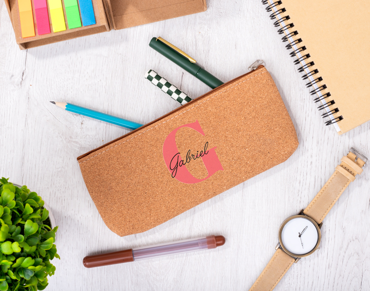 A veces la vuelta al cole suele ser un poco dura. Después de un verano lleno de diversión y viajes lo último que apetece es volver a la rutina. Aunque como todo, también tiene sus cosas bonitas como reencontrarte con esos compañeros de clase que hace mucho que no ves o con tus profes favoritos. Sin duda, otra ventaja de volver a la escuela es poder estrenar el material escolar. Este estuche de corcho nature es algo que no te puede faltar. Es perfecto para que puedas guardar todo el material escolar necesario, como bolis, lápices, rotuladores, pinturillas… ¡Lo que necesites! Y lo mejor: es personalizable. Podrás escribir el nombre que quieras, así todos sabrán de quien es este estuche tan chulo. Personalizar este estuche de corcho nature es súper sencillo. El primer paso a seguir consiste en añadir el producto al carrito y entrar al área de personalización. Una vez ahí, puedes escribir el nombre que quieras junto con su inicial en grande. Sin duda, a esa persona le hará muchísima ilusión. Todo lo demás es cosa nuestra y pronto estará listo para regalar. ¡Un original regalo para la vuelta al cole! Medidas: 21cm x 10cm.