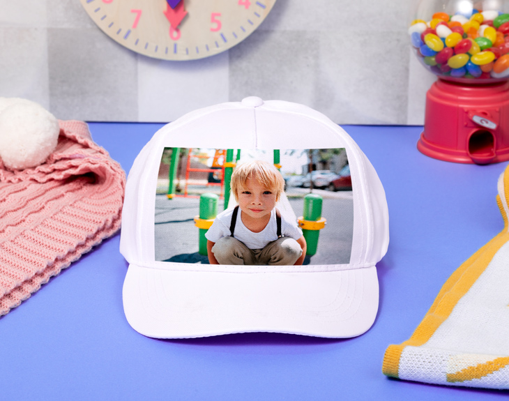 • Gorra blanca infantil personalizada. • Tarjeta recordatoria.
