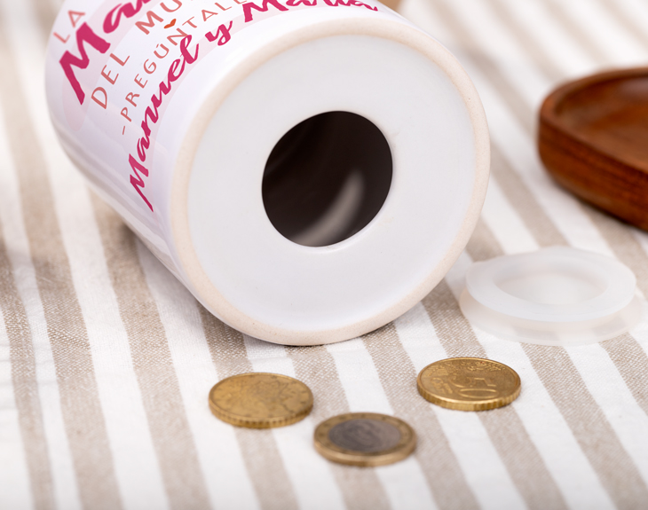 • Hucha de cerámica de 9,5cm de altura. • Tarjeta recordatoria.
