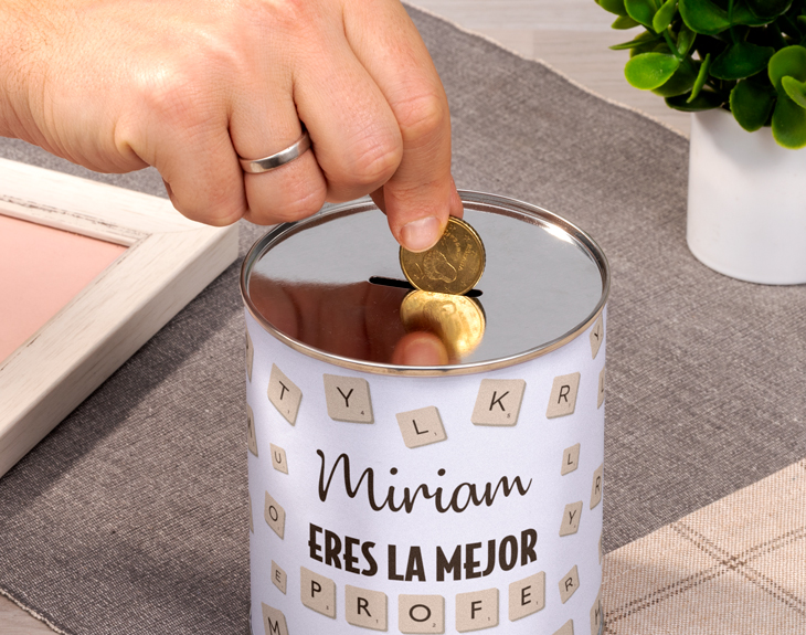 ¿Nunca has pensado que no podrías jugar al Scrabble si no fuera por tu profesor/a? Él/Ella te enseñó a escribir, a leer, a formar palabras... ¿Qué manera más bonita de homenajear su trabajo que con un diseño basado en este juego de mesa? Forma la palabra "profe" y dile que es el mejor con esta hucha de lata personalizada con nombre. Ya sea tu maestro de Lengua y Literatura o de Matemáticas, le encantará el diseño con las fichas de las letras del abecedario. Esta hucha circular es válida tanto para monedas como para billetes. Además de ser útil, puedes convertirla en un gran regalo original para profesores. En todo el centro, tendrás un hueco para escribir el nombre de esa persona tan especial que te ha enseñado tanto. Añade el producto al carrito y mira lo chulo que te va a quedar con la previsualización de tu diseño. Si quieres darle la sorpresa total, nosotros nos encargamos de llevarle esta hucha redonda de metal a su casa. ¡O a su centro de estudios si indicas todos los datos! Medidas: -32 cm de circunferencia -10 cm de diámetro -11,5 cm de altura Material: metal Importante: esta hucha no está preparada para abrirse frecuentemente. Una vez abierta no se puede volver a cerrar.