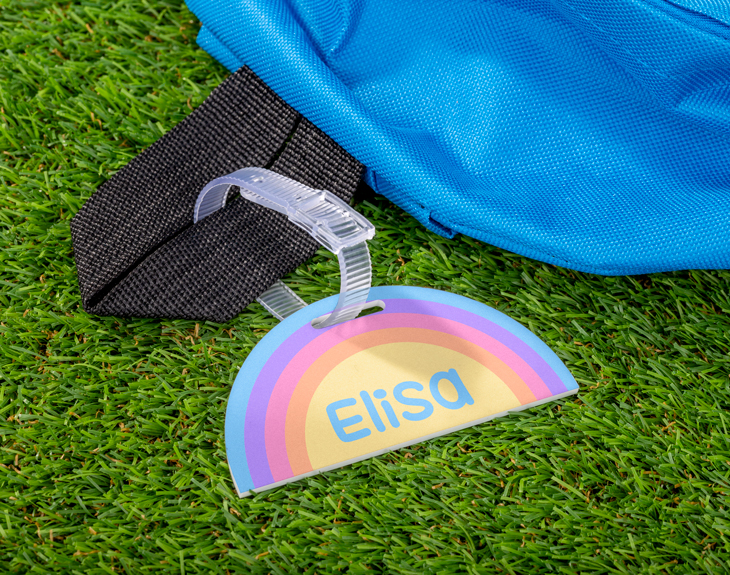 • Identificador de mochila personalizado. • Tarjeta Recordatoria.