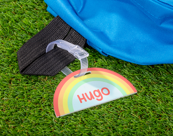 ¿Se acerca la vuelta al cole y tu peque adora los colores del arcoíris? Si quieres que empiece el curso con energía, alegría y una sonrisa, este identificador de mochila personalizado con diseño de arcoíris es el detalle perfecto para sorprenderle. Irá al cole lleno de color y listo para brillar como nunca. Es un regalo original ideal para niños y niñas que aman los colores vivos y divertidos. Podrás personalizar este identificador con su nombre y elegir el diseño de arcoíris que más te guste, tenemos opciones súper originales. Así, llevará una mochila única y llena de color para comenzar el curso con toda la energía. También es perfecto para poner en la pañalera de la guardería, estará siempre visible y brillando con estilo. Personalizarlo es muy fácil: solo añade el producto al carrito, elige tu diseño favorito y escribe el nombre o texto corto que quieras incluir. Crea un identificador único, lleno de vida y color. Sin duda, él y su mochila estarán listos para iluminar el aula desde el primer día. Medidas: 9x4,5 cm.