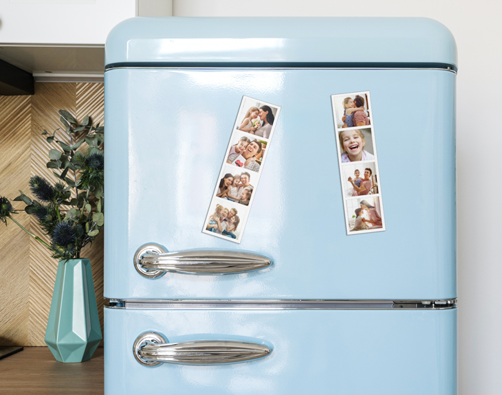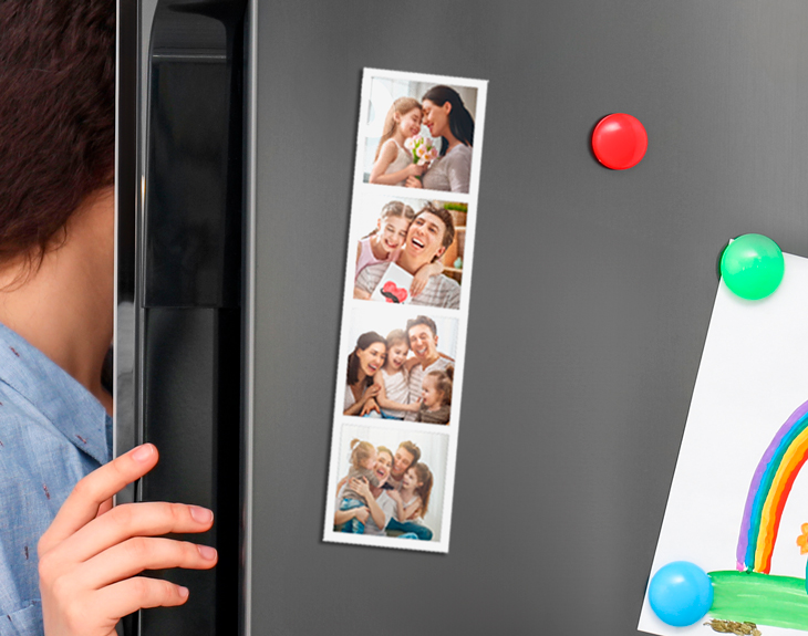 ¡Qué bonito es estar con la familia! Puede que te guste muchísimo tomarte algo con tus amigos, o pasar el rato con los compis del trabajo. Aún así, hay que reconocer que los mejores instantes son los que has vivido al lado de tu familia. Ya sea con tus padres, con tus hermanos o con algún primo o tío. ¡Nuestra familia siempre va a estar ahí! Hay que cuidarla como se merece. Seguro que habréis viajado una barbaridad. Escapadas a la playa, a la montaña, al pueblo, a visitar grandes ciudades... ¡debéis de tener la nevera repleta de imanes! ¿Os gustaría recordar esas vacaciones en la costa que tanto disfrutasteis? Nosotros tenemos una solución práctica y bonita: nuestro imán de tira de fotomatón con fotos personalizado hará que vuestro frigorífico tenga un toque mucho más vintage. Este imán es una tira de fotos, como esas que salían del fotomatón. ¡Este es un regalo original para los más nostálgicos! Podrás personalizar este producto con las fotografías que desees. Solo tendrás que entrar en el diseñador y escoger las imágenes que quieras ver en el imán. Número de fotos: 4. Medidas de la tira de fotos: 19,5x5,5 cm. Importante: en el diseñador, recomendamos añadir todos los elementos dentro de los límites de la tira, marcados por el color de fondo y una línea negra; todo lo que quede diseñado en la parte blanca de la plantilla fuera de la superficie de la tira no saldrá impreso.