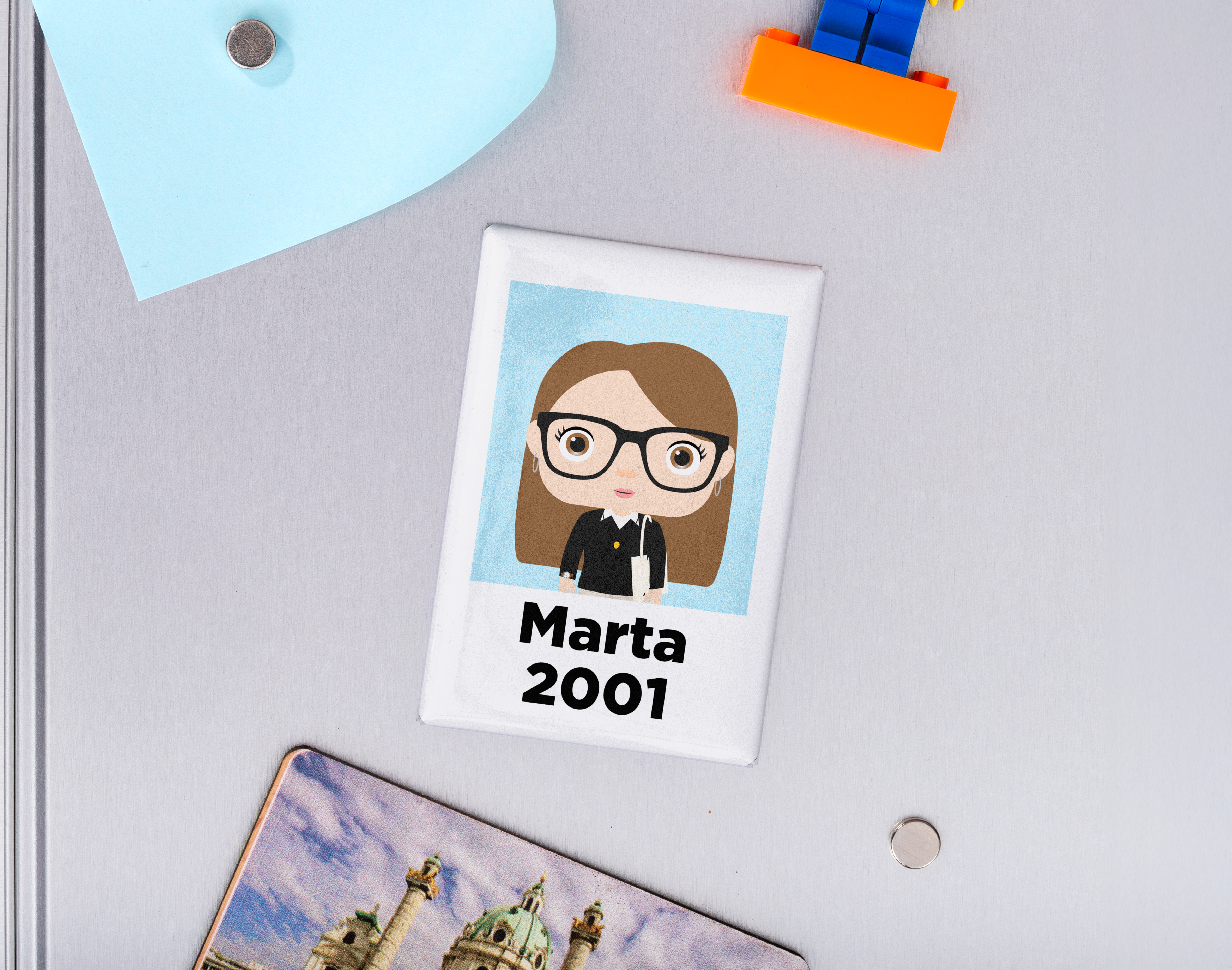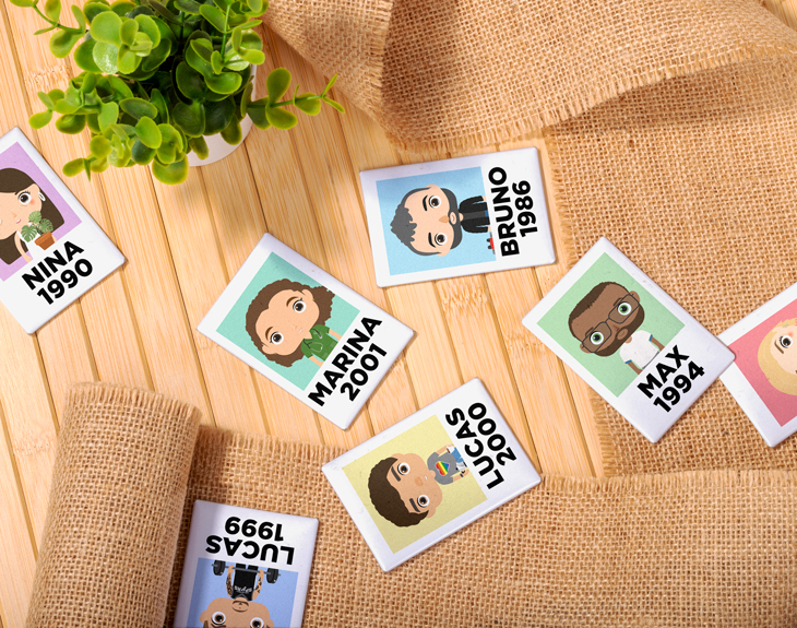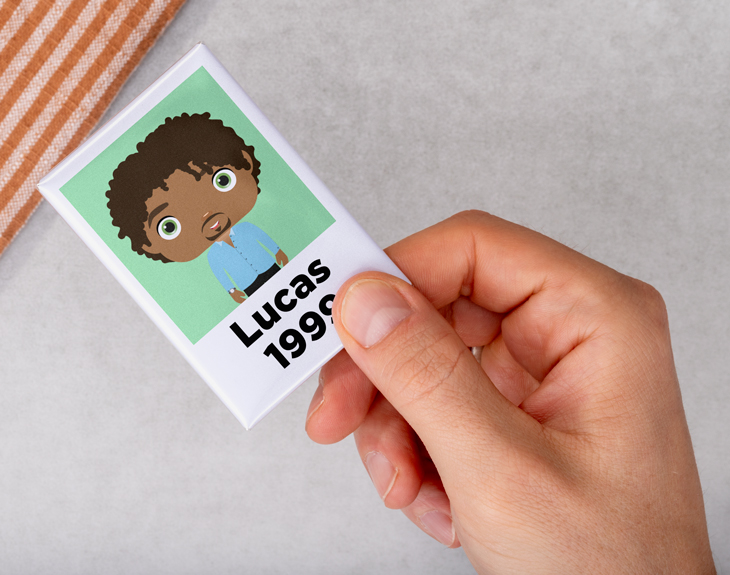 Si eres de esas personas a las que les gusta decorar su nevera con un montón de imanesd de todo tipo, este imán personalizado te va a encantar. Y es que seguro que tienes muchos imanes en la puerta de tu frigorífico pero ninguno tan guay como este que podrás crear tú mismo. Pero lo mejor de este original imán es que puede ser el regalo perfecto para un cumpleaños, el amigo invisible o incluso para sorprender a los invitados de tu boda. Gracias a nuestro selector de cantidad, podrás elegir cuántas unidades quieres y también si quieres que sean todos iguales o cada uno diferente. Para personalizar este imán con tu propio muñeco, el primer paso es acceder a nuestro diseñador. Después, vas a poder crear a tu personaje añadiendo todos los detalles que necesites y solo te falta añadir un nombre o texto en la parte inferior para terminar. El último paso es recibirlo en casa y... ¡disfrutar! Medidas: 6 x 9 cm.