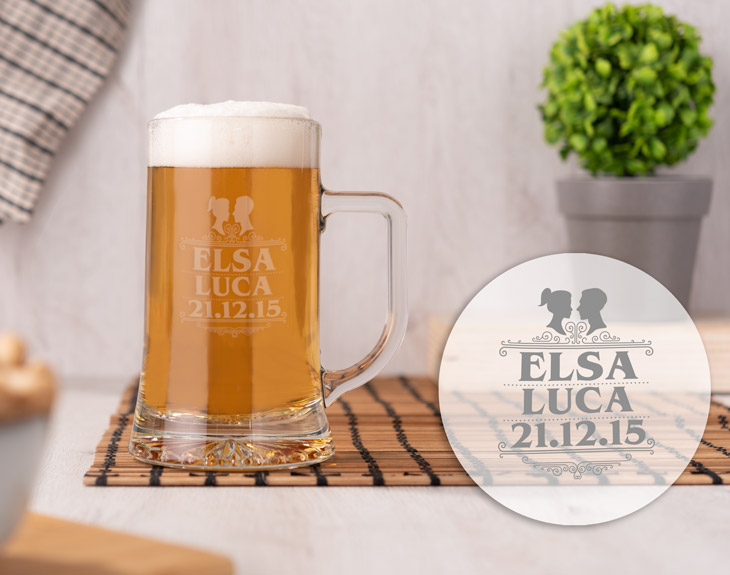 No hay amor más puro que el vuestro y eso se nota de lejos. Vuestro amor es grande, real, sincero y leal y en los tiempos que corren… ¡Eso es una suerte! Ya nadie se quiere como se quería las parejas de hace años. Todos y todas queremos un amor como el vuestro, como el de antes. Para celebrarlo hemos pensado que no hay celebración sin cerveza y por esa misma razón hemos creado esta jarra de cerveza personalizada con un diseño muy romántico en el cual podéis grabar vuestros nombres y también esa fecha tan especial para vosotros o vosotras. ¿No crees que es una idea genial? A tu pareja seguro que le va a encantar. Diámetro interior: 7cm Medidas aproximadas: 8,5 x 15,5 cm