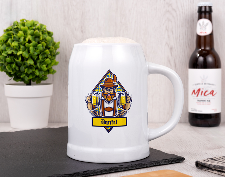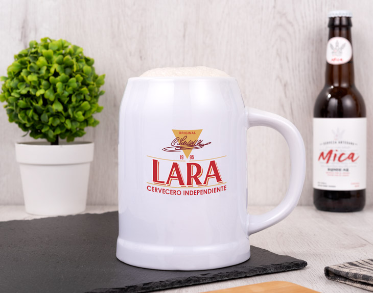 Su sutil sabor amargo, su color amarillo brillante y su abundante espuma, hacen de la sureña Cruzcampo una cerveza única e inconfundible. Hay quienes que no entienden una fiesta de amigos y amigas, una reunión familiar o un partido de fútbol sin esta cerveza sevillana. Si a ti también te encanta esta cerveza y no la cambiarías por ninguna otra, necesitas esta jarra de cerveza de cerámica personalizada con el propio logo de Cruzcampo, pero con un ligero cambio, que en vez de ‘Cruzcampo’ va a aparecer tu nombre. ¿No te parece una idea genial? Disfruta de tu cerveza preferida como realmente te mereces con una jarra de una capacidad de hasta medio litro.