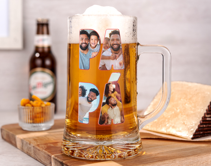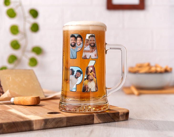 Porque Papá es ese héroe de la casa que siempre está ahí para nosotros: en las risas, en los juegos divertidos aunque ya seamos mayores, en los consejos y también en esos momentos especiales donde un abrazo fuerte sabe calmar y, sin duda, proteger. Esta jarra de cerveza personalizada, que captura todos esos momentos y bonitos recuerdos, es justo lo que necesita para sentirse aún más querido y especial por nosotros. Es, sin duda, el regalo para el Día del Padre perfecto, porque así, cada brindis será un homenaje a su esfuerzo, su paciencia y ese amor incondicional que siempre está ahí. Lo sorprenderás con esta jarra de cerveza con fotos, en la que podrás elegir las imágenes favoritas que mejor representen su historia y crear un collage que forme la palabra "PAPÁ" en la jarra. ¡La amará! Personalizarla es súper sencillo: solo tienes que añadirla al carrito y, en el área de diseño, subir las fotos que quieras para completar la palabra PAPÁ, que terminará llena de recuerdos y momentos inolvidables juntos. Importante: esta copa no se puede meter en el lavavajillas. Diámetro interior: 7cm Medidas aproximadas: 8,5 x 15,5 cm