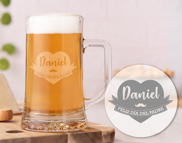¿Tú padre tiene un corazón que no le cabe en el pecho? Si además de ser un padre fantástico, es el primero en estar ahí cada vez que sus amigos lo necesitan y el encargado de que tú familia sea un bloque irrompible, es el momento de darle una sorpresa con una jarra de cerveza personalizada tan especial como esta. Además, si tu padre es de esos que no saben decir que no a unas cañas y cualquier momento le parece bueno para irse de cervezas, le encantará disfrutar de su bebida favorita en una jarra así de guay. Solo tienes que decirnos su nombre y podréis brindar por todo lo alto. Si todavía no tenías regalo para su cumpleaños, para el Día del Padre o para Navidad, esta es una opción fantástica. ¡No podrá gustarle más! Diámetro interior: 7cm Medidas aproximadas: 8,5 x 15,5 cm