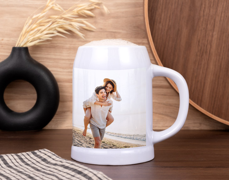 • Jarra de cerveza personalizada. • Tarjeta recordatoria.