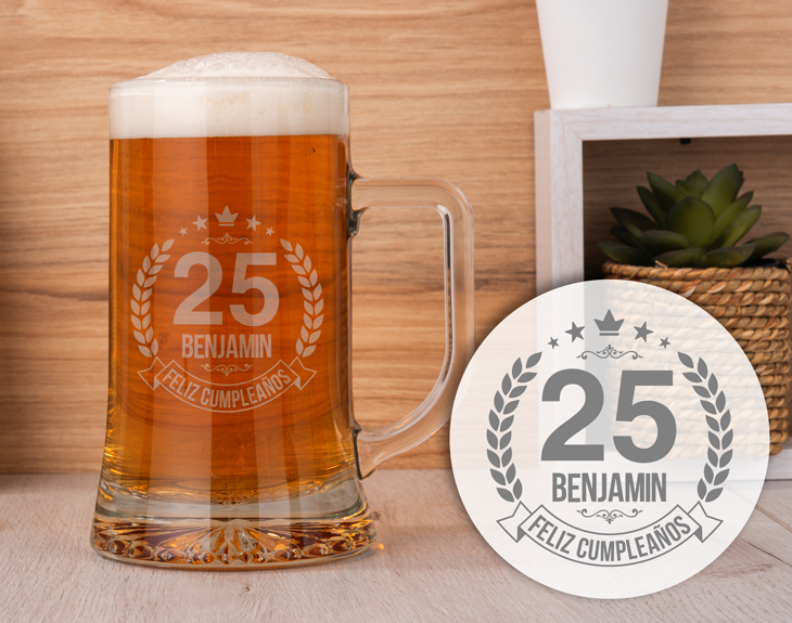 Cuéntanos que te gusta hacer… ¿Fotografía? ¿Cocinar? ¿Jugar al tenis? ¿Nadar? Sea lo que sea lo que te guste hacer, seguro que tenemos un personaje que se adapta a ti y a tu hobby. Creías que era imposible combinar tu actividad favorita con beber cerveza, ¿verdad? Esta jarra de cerveza personalizada es genial para tomar tu cerveza favorita cuando termines tus momentos de ocio, además para que el diseño sea aún más único grabaremos tu nombre. ¡No esperes más! Ya estamos listos para grabar a tu personaje. Diámetro interior: 7cm Medidas aproximadas: 8,5 x 15,5 cm
