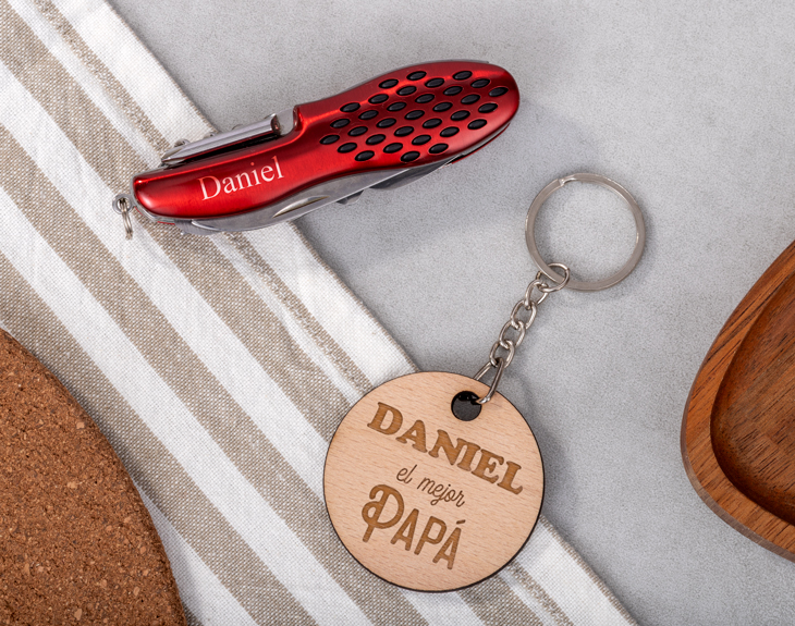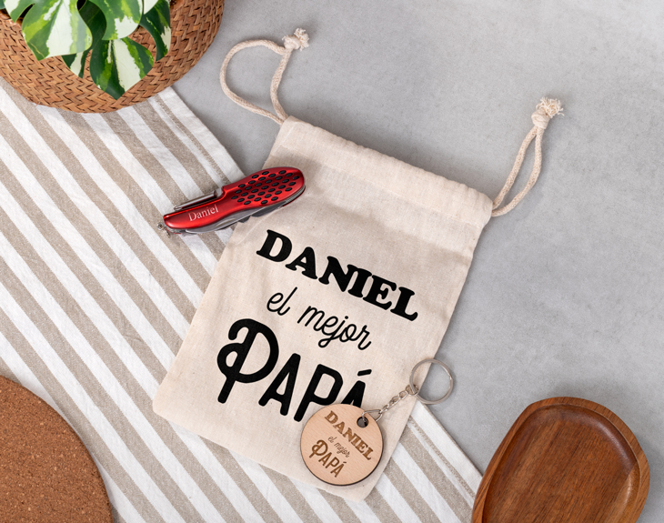 ¿Aún no tienes regalo para el Día del Padre? No te preocupes porque tenemos el detalle perfecto para sorprender a papá en este día tan especial y es nuestro kit personalizado. ¿No sabes qué contiene este pack tan guay? Pues una navaja multiusos, una pequeña bolsita de tela y un llavero de madera. Y lo mejor de todo es que está hecho especialmente para papá. Si quieres tener un detalle con él por el Día del Padre o su cumpleaños, no dudes que este original regalo le dejará sin palabras. La navaja multiusos es ideal para los padres más manitas y que siempre que se rompe algo lo arreglan. La bolsita es genial para guardar la navaja o incluso otras cosas que tenga papá, así que le encantará. Y el llavero, quedará genial en sus llaves de casa, del coche o incluso colgado en alguna mochila. ¡Es un regalo único! Para poder personalizar este kit, primero tienes que acceder al área de personalización. Una vez dentro, podrás personalizar cada producto de forma individual. En la navaja, además de elegir el color, podrás elegir qué nombre grabar en ella. La bolsita y el llavero llevarán el mismo diseño que es perfecto para decirle a papá que es el mejor. ¡Será el mejor regalo del mundo! Especificaciones de la navaja: - Colores disponibles: verde, rojo y azul. Especificaciones de la bolsita: - Medidas: 20 x 15 cm. - Material: tela. Especificaciones del llavero: - Medidas: 4 cm de diámetro. - Material: madera.