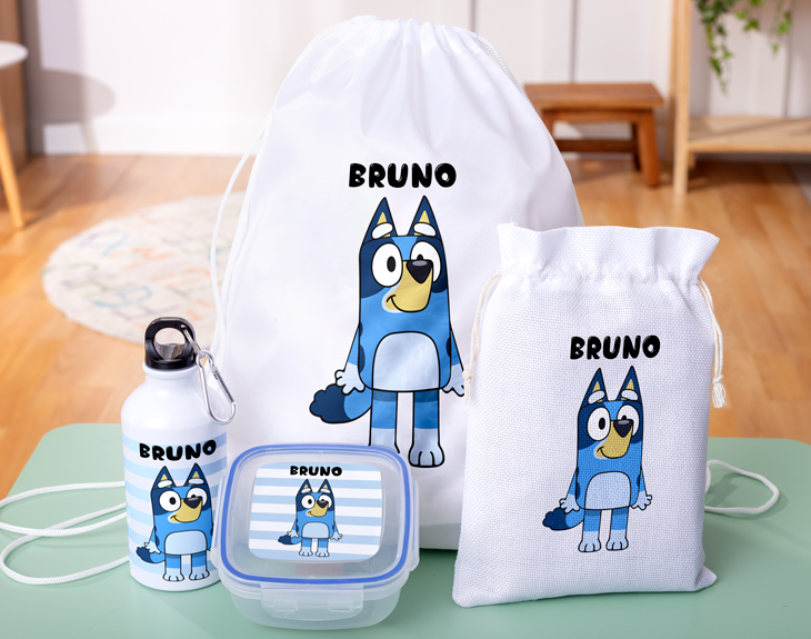 No olvides personalizar todos los elementos del kit, para que queden preciosos y tu peque empiece el cole con toda la energía y diversión, igual que Bluey, el perrito más simpático y divertido de la tele.