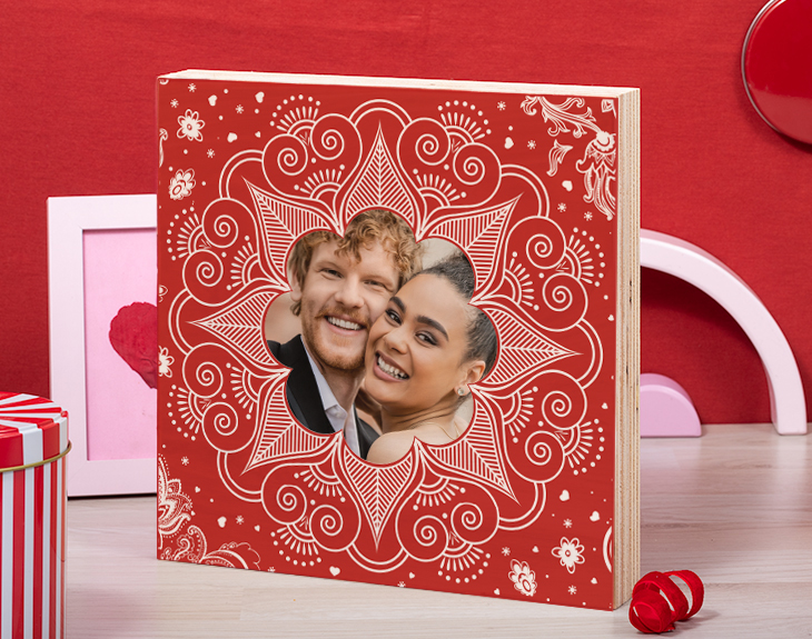 Inspirada en las figuras del Mandala, esta lámina personalizada está pensada para las parejas más románticas. Con una foto en el centro, en el corazón, enamorarás a tu pareja en cuanto abra el regalo. Es una bonita sorpresa si no pasáis por momentos felices o si, simplemente, quieres sacar una enorme sonrisa. Elige la foto que más te guste y tendrás esta lámina para colgarla en vuestro dormitorio o cualquier rincón de la casa. Podrás elegir esta lámina en dos tamaños: A4 o gigante, este último con unas medidas de 85 x 60 centímetros. Lo pongas donde lo pongas, llenará de amor ese lugar. ¡Qué romántico! Importante: El color del marco puede variar según stock.