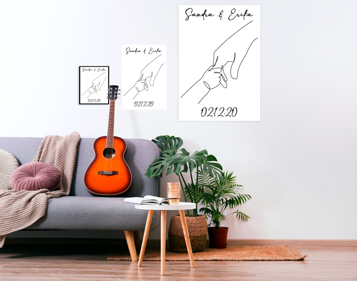 ¿Quieres sorprender a esa mujer que acaba de ser madre? Tenemos el detalle perfecto, se trata de nuestra lámina personalizada con diseño "Manos de madre y bebé". Sin duda, le encantará recibir este detalle tan especialen este momento tan bonito de su vida. Y es que tener un bebé siempre es una noticia increíble así que, ¿qué mejor forma de darle la enhroabuena con esta lámina? Ya sea por el Día de la Madre, por su cumpleaños o por cualquier fecha especial, esta lámina será un regalo muy original. Tiene un estampado precioso de dos manos entrelazadas, es precioso. Pero lo mejor es que es personalizable, podrás escribir el nombre de la madre junto con la del bebé. ¡Será el detalle más especial! Por último, personalizar esta lámina es súper sencillo. EL primer paso a seguir consiste en añadir el producto al carrito y entrar al área de personalización. Una vez ahí, ya puedes escribir los nombres y la fecha que quieras. Pronto estará perfecto y listo para regalar. ¡Será un original regalo para madres! Importante: Si escoges la opción "versión digital" te enviaremos el diseño por mail en alta resolución. De esta manera, tendrá la calidad necesaria para que puedas imprimirla en cualquier formato. En el formulario de entrega tendrás que seleccionar la opción "Recibir por Email para ahorrar los gastos de envío". Importante: El color del marco puede variar según stock.