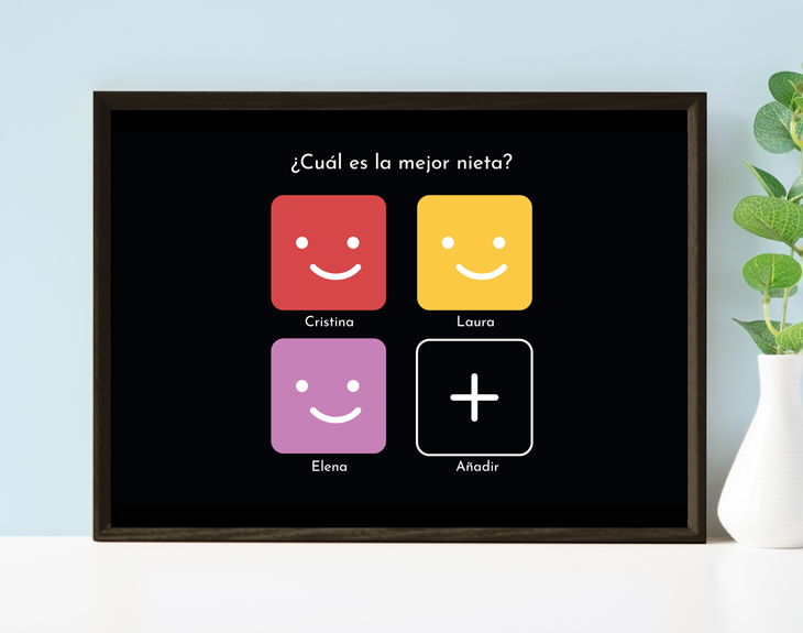 Existen muchos planes que podemos hacer tanto solos como acompañados, pero sin duda el mejor plan que hay es pasarte horas viendo Netflix, tirado en el sofá con un buen cubo de palomitas. Seguro que conoces a alguien que sea fan de este plan y se haya visto toda la cartelera de Netflix (o quizá esa persona seas tú) En cualquier caso, para personas como vosotros tenemos este original regalo que estamos seguros de que os encantará. Netflix es la plataforma que nos permite ver mucho contenido pero a la vez muy diferente. Igual de diferente que las personas con las que compartes cuenta. No importa con quien lo compartas, triunfarás con ellos si les regalas esta lámina personalizada para que la puedan colocar al lado de la televisión y recordar siempre lo fan de Netflix que son. Podrás personalizar totalmente a medida tu propia lámina. Hemos creado un diseño especial que te permite poner los nombres de los usuarios con los que compartes cuenta y poner la frase que más os represente. Ahora solo queda disfrutar de esta taza mientras enciendes Netflix y pones tu serie favorita. Importante: El color del marco puede variar según stock. Podrás elegir esta lámina en dos tamaños: A4 o gigante, este último con unas medidas de 85 x 60 centímetros.