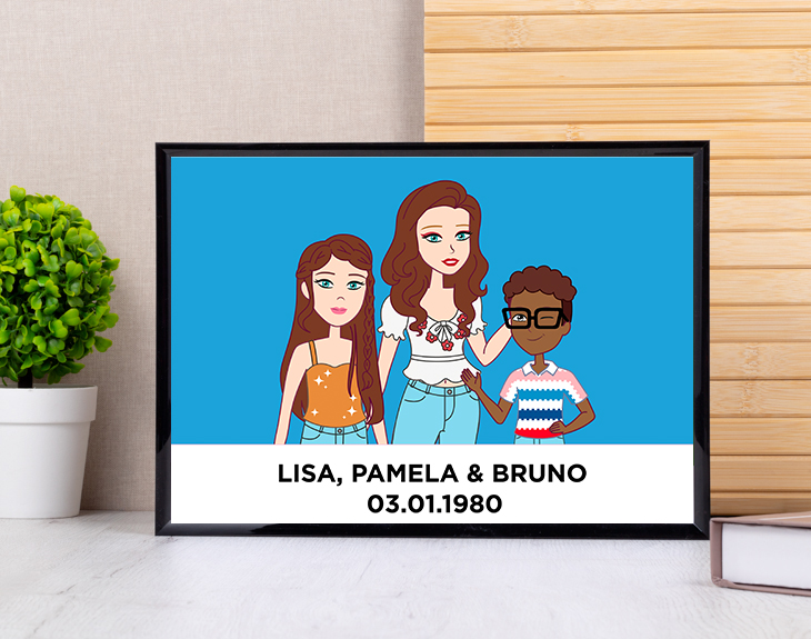 ¿Te imaginas transformar a todos tus familiares en habitantes de Dollinaland? ¿A que sería genial? Si siempre has soñado con pertenecer a este mundo y sentirte como una auténtica Dollina tenemos algo que te va a encantar. ¡Nuestra lámina personalizada con diseño "Madre Dollina Pop"! Podrás representar a tus seres queridos en forma de Dollinas y Ken porque es personalizable. ¡Es genial! Hay un montón de rasgos y accesorios diferentes para que puedas representar a tus familiares a la perfección. Sin duda, esta lámina se puede convertir en un regalo de lo más original para sorprender a tu mamá. Ya sea por su cumpleaños, por el Día de la Madre o simplemente... ¡Por ser la mejor madre del mundo! Será el regalo perfecto, le encantará. Por último, personalizar esta lámina es súper sencillo. El primer paso a seguir consiste en añadir el producto al carrito y entrar al área de personalización. Una vez ahí, ya puedes crear a estos avatares de Dollina y Ken como tú quieras. ¡Ya verás qué divertido! Pronto estará perfecto y listo para regalar. ¡Será un regalo muy original para fans de Dollina! Importante: Si escoges la opción "versión digital" te enviaremos el diseño por mail en alta resolución. De esta manera, tendrá la calidad necesaria para que puedas imprimirla en cualquier formato. En el formulario de entrega tendrás que seleccionar la opción "Recibir por Email para ahorrar los gastos de envío". Importante: El color del marco puede variar según stock.