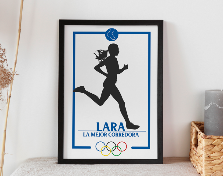 Los Juegos Olímpicos es una de las competiciones deportivas más importantes, en este evento compiten un montón de naciones de todo el mundo. Si tú conoces a ese atleta que si sueño siempre ha sido llegar a competir en las olimpiadas, tenemos un detalle que le animará a perseguir su meta. Sorpréndele con nuestra lámina personalizada con diseño "Olimpiadas Atletismo". Lo mejor de esta lámina es que es personalizable, podrás escribir el nombre que tú quieras. Se convertirá en un original regalo para esa persona súper fan de los Juegos Olímpicos. Personalizar esta lámina es muy sencillo. El primer paso a seguir consiste en añadir el producto al carrito y entrar al área de personalización. Una vez ahí, ya puedes escribir el nombre que tú quieras. Pronto estará perfecta y lista para regalar. ¡Será un original regalo para fans de las olimpiadas! Importante: Si escoges la opción "versión digital" te enviaremos el diseño por mail en alta resolución. De esta manera, tendrá la calidad necesaria para que puedas imprimirla en cualquier formato. En el formulario de entrega tendrás que seleccionar la opción "Recibir por Email para ahorrar los gastos de envío". Importante: El color del marco puede variar según stock.