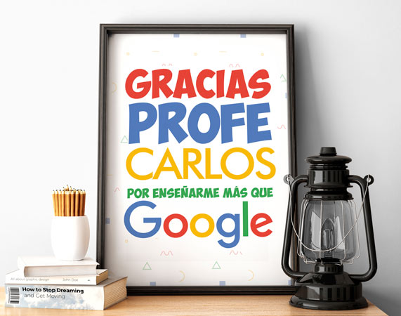 Sorprende a tu profe favorito con esta lámina personalizada tan original. ¿Llevas tiempo queriendo agradecerle todo lo que te ha enseñado pero no sabías cómo? Esta es la solución perfecta. Un detalle divertido, tierno y muy especial. ¿A quién no le gustaría tener una lámina así de bonita con su nombre? Y ya si es un regalo de tus alumnos...¡No se nos ocurre un regalo mejor! Podrás elegir esta lámina en dos tamaños: A4 o gigante, este último con unas medidas de 85 x 60 centímetros. Importante: El color del marco puede variar según stock.