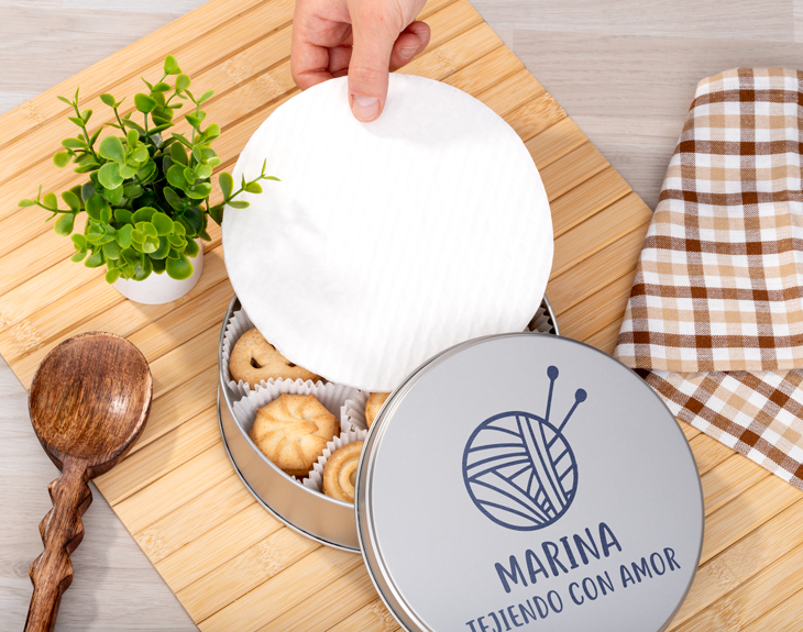 Seguro que alguna vez te ha pasado de ir a casa de tu abuela y encontrar una lata de galletas y que dentro esté llena de hilos de costura. ¡Nos ha pasado a todos! Por eso, estamos seguros de que esta lata de galletas personalizada con diseño "Tejiendo con amor" será el regalo perfecto para cualquier abuela. Y es que le podrás regalar esta lata rellena de galletas y una vez que se terminen, podrá usar la caja para lo que ella quiera. Además, lo mejor es que es personalizable, podrás escribir el nombre de la mejor abuela del mundo en la tapa de esta lata. ¡Quedará genial! Personalizar esta lata de galletas es súper sencillo. El primer paso a seguir consiste en añadir el producto al carrito y entrar al área de personalización. Una vez ahí, ya puedes escribir el nombre que tú quieras. Pronto estará perfecto y listo para regalar. ¡Será un original regalo! Diámetro: 19 cm. Peso: 277g aprox.