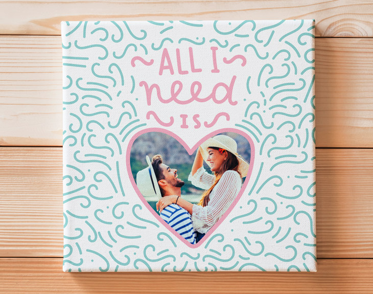 ¿Recuerdas la famosa canción de los Beatles "All You Need Is Love"? Si como el grupo inglés, tú también piensas que lo más importante es el amor, este lienzo personalizado es perfecto para sorprender a tu pareja. Solo tienes que escoger una bonita foto juntos y tu persona favorita se morirá de amor al verla dentro de este diseño...¡Seguro que lo cuelga corriendo en la habitación! • Los laterales quedan envueltos con el propio lienzo. • Bastidor de 3cm de madera samba. • Impresión a 1440dpi. • Tintas con protección para rayos UV. • Lienzo de algodón de alta calidad ultra blanco de 415 gramos. • Se entrega montado, listo para colgar.