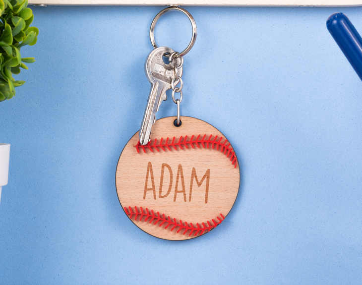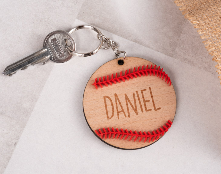 A todos los amantes del deporte seguro que les gusta practicarlo en su tiempo libre, pero también verlo. Tu plan favorito puede ser salir a correr, ir al gimnasio o ver un buen partido de fútbol o de baseball en casa con tus amigos. Si haces ejercicio a menudo y tienes que llevar las llaves de casa encima, seguro que no quieres perderlas, ¿verdad? Por eso, este llavero personalizado es el accesorio perfecto para no perder nunca tus llaves. Hagas lo que hagas, siempre las tendrás a mano y bien ubicadas. ¡Es perfecto! Si quieres sorprender a esa persona amante del deporte, con este original llavero de baseball seguro que lo haces. Le encantará recibir un llavero tan guay y diferente y además, personalizado. Hecho con madera, tiene la forma de una pelota de baseball con sus características costuras de color rojo. Podrá colgarlo en las llaves de casa, del trabajo o del coche o para decorar cualquier bolso o mochila y darle un toque único. Sin duda, lo mejor de este producto es que podrás personalizar este llavero. ¡Es muy sencillo! Añade el producto al carrito, entra en el apartado de personalización y escribe el nombre que quieras. Nosotros nos encargamos de grabarlo para que quede perfecto. ¡Es el llavero perfecto para los más deportistas!