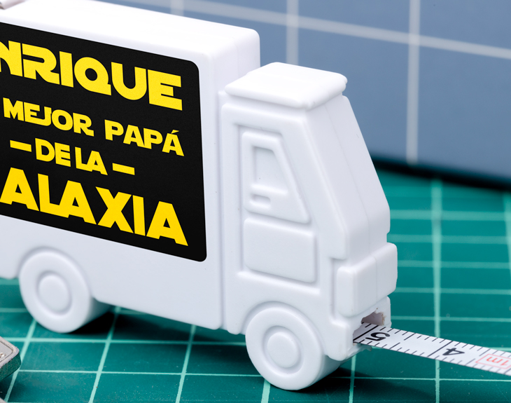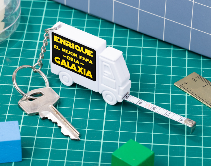 Si quieres sorprender a papá con un regalo único, práctico y muy original, este llavero personalizado con forma de camión es todo un acierto. Porque además de colgarlo en sus llaves y ser un elemento de decoración de lo más guay, también es una cinta métrica que podrá usar siempre que quiera o necesite. ¡Es un regalazo! Si este año te apetece decirle a papá lo mucho que le quieres y que es el mejor de la galaxia, no pierdas la oportunidad de hacerlo con este original regalo. Nadie tendrá nada igual y te aseguramos que triunfarás en ocasiones como el Día del Padre o su cumpleaños. Y no te dejes engañar por su diminuto tamaño, porque con este llavero podrás medir hasta 100 centímetros. ¡Es lo más! Y llega la mejor parte que es personalizar este llavero para convertirlo en un detalle único y personal. Entra en el área de personalización y completa nuestro diseño más espacial con el nombre de papá, del resto nos encargamos nosotros.