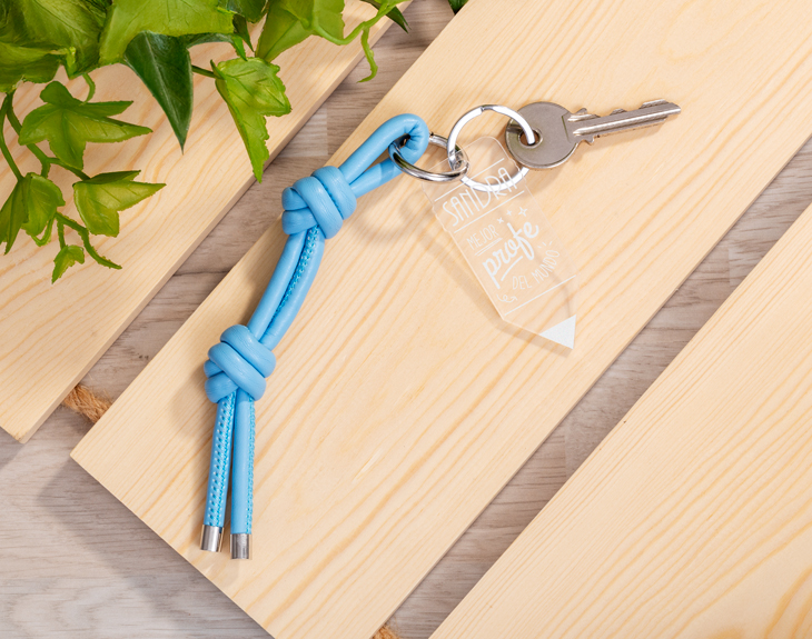 ¿Queréis sorprender a vuestro profe favorito al acabar el curso? Con nuestro original llavero en forma de lápiz, ¡vais a acertar seguro! Es un detalle bonito, práctico y con un toque muy especial, ideal para regalar el último día de clase y dejar a vuestro profesor o profesora sin palabras. Este llavero no es solo un accesorio: es una forma de decirle "gracias" y recordarle que, para vosotros, es el mejor profe del mundo. Y lo mejor de todo: ¡podéis personalizarlo! Podréis añadir su nombre junto a la frase “Mejor profe del mundo” y elegir entre dos materiales súper chulos: metacrilato o madera. Ambos quedan genial y harán que el llavero sea único y muy especial. Personalizarlo es muy sencillo. Solo tenéis que añadir el producto al carrito y entrar en el área de personalización. Allí podréis escribir el nombre de vuestro profe, colocarlo como más os guste y escoger el color del nudo que mejor encaje. Así de fácil. Cada vez que coja sus llaves, se acordará con cariño de vosotros. ¡No hay regalo más bonito ni más original!