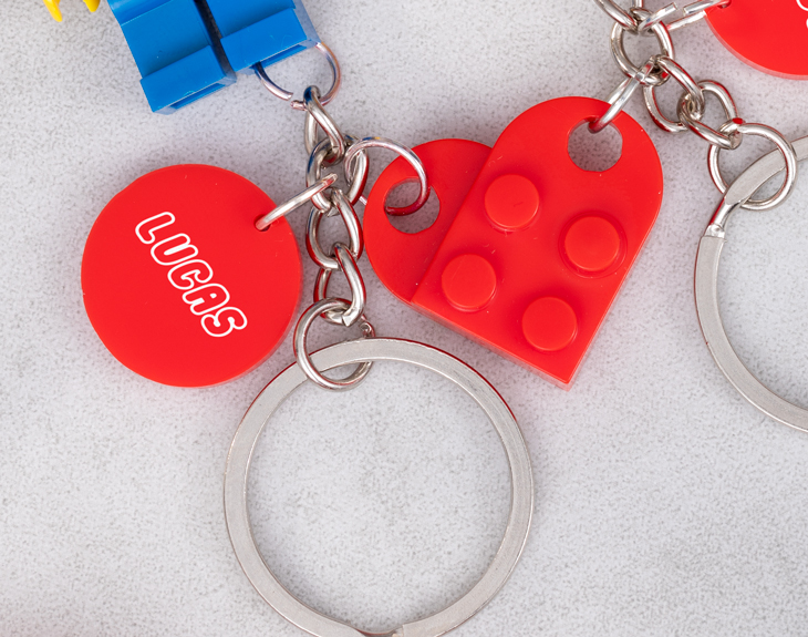 Por fin... ¿Tu pareja y tú habéis dado el gran paso y en unos meses vais a estar viviendo juntos? Si te hace muchísima ilusión y quieres hacerle un regalito, nuestros llaveros Minifigura Pareja Lego será el detalle perfecto. Es una preciosa forma de demostrarle las ganas que tienes de tener vuestra propia casita y convivir, sin duda, le encantará. Si sois súper fans de las piezas de Lego, seguro que alguna vez os habéis preguntado como sería si viviéseis en el mundo lego, pues gracias a este llavero podrás crear a vuestra propia figurita. ¡Es ideal! Así cada uno tendrá bien localizadas sus llaves de casa y no las perderá nunca. Además de las figuritas, este llavero consta de dos piezas de Lego que cuando se unen, forman un corazón, y vienen con una pequeña chapita en la que podrás poner vuestros nombres. Ya sea para el día de los enamorados, para sorprender a tu pareja, a cualquier familiar o amigo creemos que este regalo es ideal. Por último, para diseñar a estas minifiguras, lo primero es añadir el producto al carrito y entrar al área de personalización. Una vez ahí, ya puedes elegir las características de tu figura Lego y nosotros nos encargamos de montar las piezas para crear a una pareja de Legos igualitos a vosotros. Pronto estarán perfectos y listos para regalar. ¡Será un original regalo para fans de Lego! Color del corazón de Lego: rojo. En el caso de que una pieza no esté disponible, se sustituirá por otra similar.