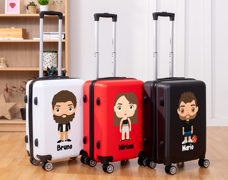 Viaja comodo con una maleta personalizada. Puedes personalizar esta maleta con tu propias fotos, collage de fotos o textos. De esta manera, no solo tendrás la mejor maleta que destaca por su imagen, sino que también puedes llevar un montón de equipaje adicional debido al material ligero del que está fabricada.