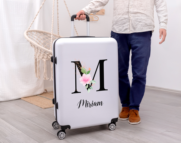 Si te gusta viajar y eres ese tipo de persona que se lleva de todo por si acaso, esta maleta grande personalizada es todo lo que necesitas. Sin duda, será tu mejor compañera de viaje porque tiene el tamaño perfecto para que puedas guardar todo lo que necesites. ¡Es lo más! Esta original maleta de color blanco es perfecta para acompañarte a tu próximo destino. Y lo mejor de todo es que podrás personalizarla con tu propia inicial y nombre y darle un toque único y muy floral. Vamos, que nadie tendrá una maleta como esta. ¡Serás el centro de todas las miradas! Para personalizarla, primero añade el producto al carrito y entra en nuestro diseñador. Después, vas a poder elegir la inicial con las flores que más te gusten y para finalizar, escribe el nombre que quieras y listo. Así de fácil es tener la mejor maleta del mundo. Medidas: - Maleta grande: 74 cm x 47 cm x 29 cm. El interior está compuesto por dos compartimentos con cremallera, donde podrás organizar toda la ropa y los complementos para no perder nada. Además, también cuentan con un bolsillo en el que guardar cualquier tipo objeto. Importante: la maleta cuenta con un sistema de seguridad con candado TSA. Las cremalleras de la maleta se pueden introducir en dos espacios, protegidos por este código. Si no introduces el código correcto, las cremalleras no podrán salir y no se podrá abrir la maleta.