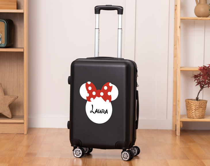 La maleta del momento para las personas que siguen viviendo con ese espíritu infantil tan bonito e inocente. Si tu pareja, tu mejor amigo o un conocido siente admiración todavía por Mickey y Minnie, es el momento de hacerle un regalo original perfecto. ¿Te encanta hacer reír a los demás? Esta maleta personalizada es genial para sorprender a las personas más inocentes, alegres y transparentes del mundo. Solo tendrás que elegir si quieres a Minnie o a Mickey, y añadir el nombre de la persona que se irá de viaje con esa maleta. ¡Seguro que le hace una ilusión tremenda! El interior de la maleta tiene distintos compartimentos, para que puedas diferenciar la ropa y que tu viaje sea muy fácil. Además, tiene ruedas que giran 360º y un agarre firme pero natural: ¡la maleta perfecta! La maleta tiene dimensiones de mano, con lo que podrás llevarla contigo en el avión en la mayor parte de las aerolíneas (easyJet, Iberia, Vueling y muchas otras).