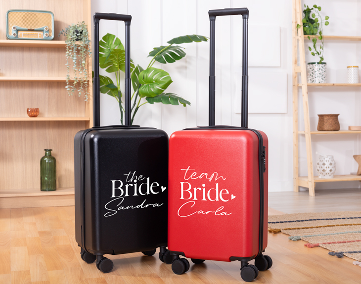 Si tú y tus amigas queréis sorprender a la próxima en dar el "Sí, quiero", esta maleta personalizada con diseño "Team Bride" es justo lo que necesitáis. ¡Se convertirá en el accesorio imprescindible para una despedida de soltera inolvidable! Y es que esta maleta no solo es práctica y bonita... ¡es totalmente personalizable! Cada miembro del grupo podrá llevar su maleta con su nombre, y juntas no pasaréis desapercibidas. Además de su bonito y delicado diseño, tiene las dimensiones ideales para llevar todo lo necesario para la escapada. Es cómoda, ligera y perfecta para viajes cortos. ¿Cómo personalizarla? Muy fácil: añade el producto al carrito y accede al área de personalización. Allí podrás escribir el nombre que quieras y ver cómo quedará. En pocos pasos tendrás un regalo original para despedidas. Y lo mejor: tiene tamaño de equipaje de mano, por lo que podrás llevarla en cabina con la mayoría de aerolíneas (easyJet, Iberia, Vueling, entre otras). Haz que el viaje empiece con estilo desde el primer momento. ¡Porque una despedida así se merece una maleta a la altura!