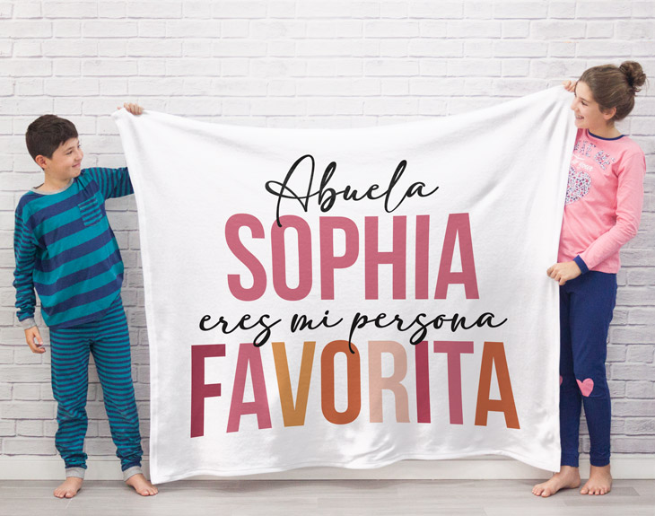 Una abuela es esa persona que se merece todo en este mundo. Ha sido capaz de cuidar y criar a sus hijos y a veces, cuando era necesario, también a sus nietos. Si tus mejores recuerdos son con tu abuela y la quieres por encima de todo, no dudes en sorprenderla con esta súper manta personalizada. es perfecta para que tu abuela esté calentita en invierno cada vez que ve la tele o para poder utilizarla cuando estáis juntos en invierno. ¡Será su manta favorita! Sabemos que no hace falta esperar a una fecha especial para tener un detallito con tu abuela, pero fechas como el Día de la Madre o su cumpleaños son el momento perfecto para sorprenderla. Con esta original manta seguro que lo consigues porque será el mejor regalo que haya recibido tu abuela en mucho tiempo. Mantas puede tener muchas, pero personalizada y especialmente hecha para ella, seguro que ninguna. Elige entre tres opciones: polar, coralina y sherpa borreguillo. ¡Las tres son geniales! Pero sin duda lo que diferencia este regalazo de los demás es poder personalizar esta manta para tu abuela. Elige el tipo de manta que quieres, añade el producto al carrito y comienza a personalizar tu manta. En ella, podrás escribir el nombre de tu abuela en el espacio vacío y colocarlo a tu gusto para que quede perfecto. Nosotros nos encargamos del resto. ¡La mejor manta del mundo la tendrá tu abuela! Las medidas pueden variar unos centímetros, son aproximadas.