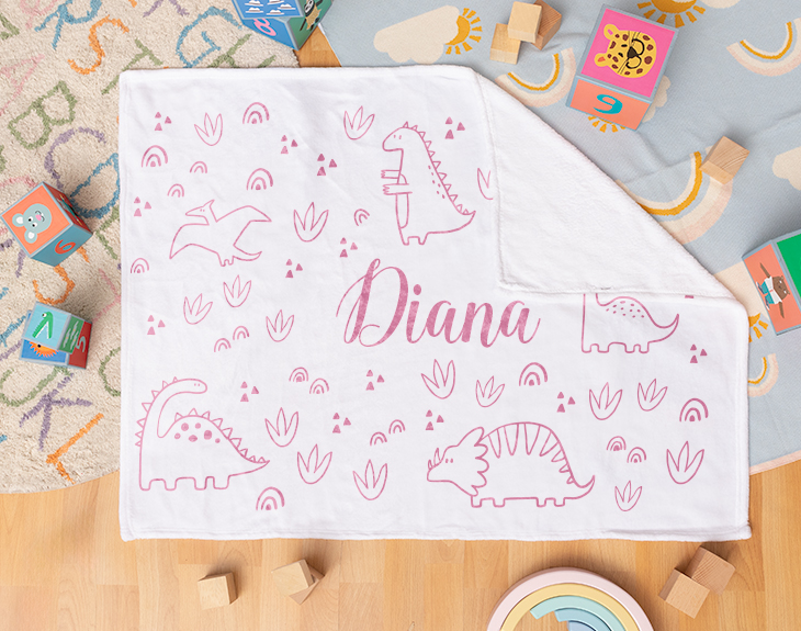 Cuando nace un bebé, lo que más queremos es pasar tiempo con él y también llenarle de pequeños regalitos. Por eso, esta mantita personalizada es perfecta para sorprender a sus papis, así podrán utilizarla durante los primeros meses de vida del peque y asegurarse de que no pasa nada de frío y está súper calentito siempre que la tenga encima. Es el regalo perfecto para la llegada del nuevo miembro de la familia. Esta original mantita de color blanco es el detalle ideal para el más peque de la casa. No hay nada como un abuena manta para arroparle cuando es un bebé, porque además al ser de coralina es suave y muy gustosa, por lo que al peque le encantará acurrucarse en ella. ¡No habrá mejor regalo que este! Personalizar esta manta para bebés es súper sencillo. El primer paso consiste en añadir el producto al carrito y entrar al área de personalización. Una vez ahí, podrás personalizar este diseño de dinosaurios con el nombre del niño o niña y listo. ¡Así todos sabrán cómo se llama el nuevo miembro de la familia! Quedará perfecta y lista para regalar. ¡Triunfarás en cualquier ocasión! Medidas: 100 x 75 cm.