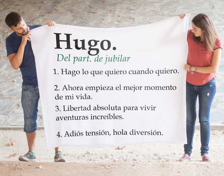 La llegada de la jubilación es un momento agridulce para muchos. Por fin tendremos todo el tiempo del mundo para nuestros hobbies pero son muchos los que echarán de menos una vida más activa. Si tu padre, madre, amigo o compañero está a punto de jubilarse, es hora de que le recuerdes todas las ventajas de su nueva vida con un regalo tan chulo como nuestra manta personalizada “Definición de Jubilación”. Seguro que le ayuda a empezar con buen pie su deseada jubilación.