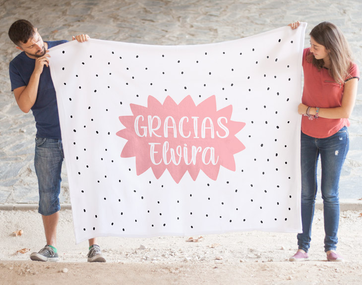 • Manta personalizada de 170cm x 130cm • Tarjeta recordatoria.