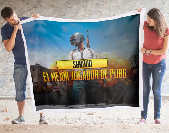 Con esta manta polar, tu Squad y tú estaréis calentitos esperando a que se cierre el círculo azul. Al jugador de PUBG, el juego más utilizado durante 2017, no le hará nada más ilusión que esta manta personalizada que le dará calor cuando se pase horas y horas frente al ordenador. Personaliza el texto de la parte superior y de la de la inferior y sorprende a ese jugador o jugadora de campeonato. ¡Seguro que se convierte en su manta para todos los inviernos ahora mismo! Las medidas pueden variar unos centímetros, son aproximadas.