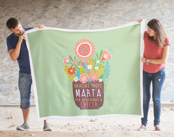 La manta personalizada perfecta para esa persona que te ayuda a construir tu futuro y hacer posibles tus sueños. Si tu profe es de esas que se preocupan realmente por sus alumnos, esta manta tiene su nombre. Una manera divertida, original y muy especial de agradecerle todo lo que hace por vosotros. Seguro que le encanta pasar sus ratitos de descanso con la manta tan bonita que le han regalado sus alumnos. Al adquirir el producto (y antes de pagar) se te preguntará el nombre para la manta. Las medidas pueden variar unos centímetros, son aproximadas.