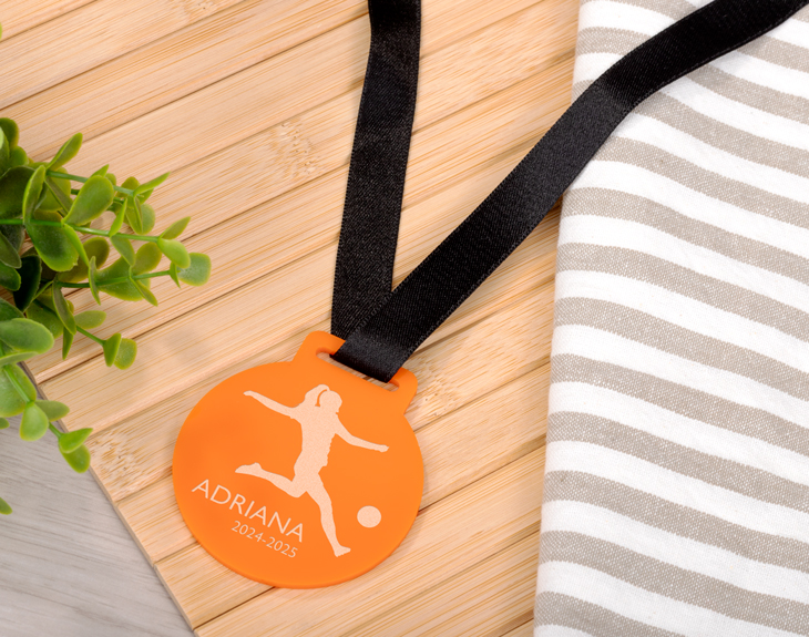 Para muchos, hacer deporte es su momento favorito del día o de la semana. Y es que existen muchas personas a las que les encanta practicar su deporte favorito siempre que pueden y tienen un hueco libre. Sorprende a esa persona con esta medalla personalizada que le dejará sin palabras porque seguro que no se lo espera. ¡Le encantará! Esta original medalla es el detalle perfecto para decirle a esa persona que es la mejor en ese deporte que practica siempre, para felicitarla si ha ganado una competición importante o simplemente porque te apetece. Además, podrás elegir de qué material la quieres (madera o metacrilato) y también el color de la tira. ¡Será un regalo único! Personalizar esta medalla es lo más fácil del mundo. Entra en nuestro diseñador y comienza a crearla a tu gusto. Elige el material, el color de la tira y también el diseño, es decir, el deporte que grabaremos en la medalla. ¡Tienes un montón de opciones para elegir! Diámetro: 7 centímetros. Material: metacrilato o madera.