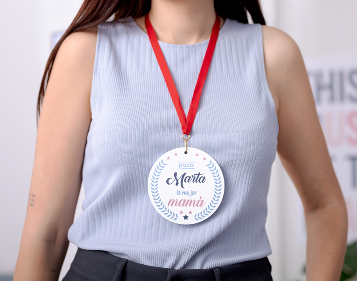 En el universo podemos encontrar madres de todos los tipos, pero ninguna de ellas se puede comparar con la mejor de todas: ¡la tuya! Esta medalla de metacrilato personalizada está pensada para las mamás que siempre lo dan todo por su familia y en todos los aspectos de su vida. ¡Se la podrás colgar del cuello en el momento en el que se la des! ¿Quieres demostrar todo lo que quieres a la mejor mamá del universo? ¡Díselo de la forma más bonita y cuqui gracias a esta medalla de oro circular y diseño de mamá! Esta medalla está hecha de metacrilato y cuenta con 10 centímetros de diámetro, lo que hace que sea lo suficientemente ligera para poder llevarla sin que termine cansando. Además, el producto incluye una cuerda de color rojo, para que la mejor madre se lo pueda colgar sin problema. ¡Será la mejor forma de homenajearla! No habrá una mejor forma de sorprender a mamá que con este regalo original perfecto por el Día de la Madre. ¡Seguro que se queda con la boca abierta al verla! Podrás personalizar este diseño con el nombre de esa grandísima madre, una vez añadas el producto al carrito. En el área de personalización encontrarás la plantilla del diseño. ¡Clica sobre el cuadro de texto para personalizarla! Nosotros nos ocuparemos de plasmar este diseño en el metacrilato. Diámetro: 10 centímetros. Material: metacrilato.