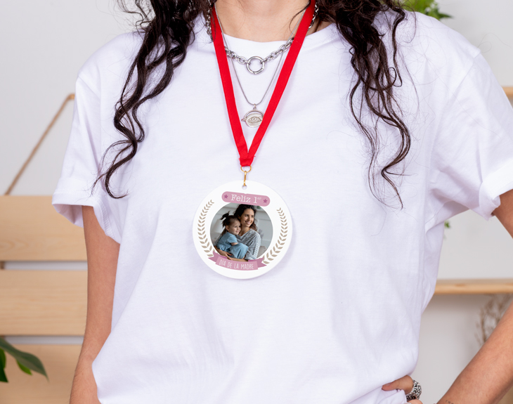 El primer Día de la Madre es una fecha que no se olvida fácilmente. ¿Quieres tener un detalle con esa mami que ha tenido que superar tantas complicaciones a lo largo de este año? Sorpréndela con algo de lo más emotivo gracias a esta medalla de metacrilato personalizada. ¡Será el mejor recuerdo de su primer domingo de mayo como mamá! Todos los problemas que ha solucionado mamá a lo largo de estos 12 meses se merecen una recompensa, ¿y qué mejor que esta medalla con forma circular y diseño de mamá para ese momento tan especial? Esta medalla está hecha de metacrilato y cuenta con una forma circular de 10 centímetros de diámetro, por lo que se la podrá colgar sin problema gracias a su cuerda de color rojo. ¡Será el mejor Día de la Madre! Este regalo original por el Día de la Madre es perfecto para esas madres primerizas que todavía están dando sus primeros pasos en el camino de la maternidad. ¿Cómo podrás personalizar este detalle? Una vez accedas al área de personalización encontrarás la plantilla sin problema. Solo tendrás que clicar ahí para subir la imagen que quieras a la plantilla. ¡Ajusta esa preciosa foto de mamá al círculo de la medalla! Diámetro: 10 centímetros. Material: metacrilato.
