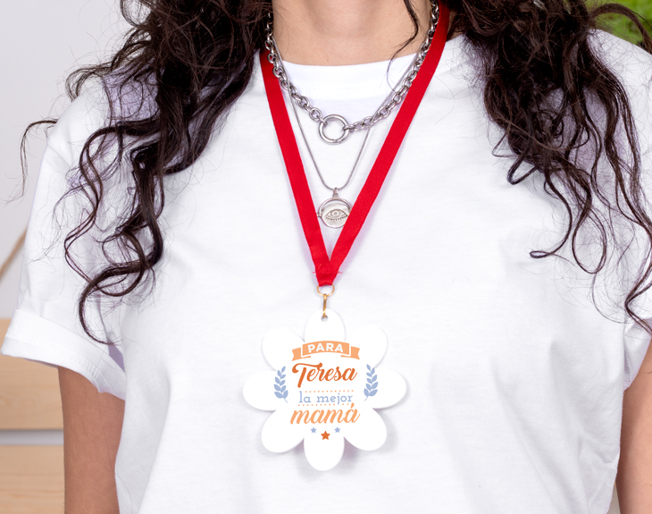 ¿Cuál puede ser la flor más bonita que le puedes regalar a mamá? ¡Aquella que le deje claro que es la mejor madre del mundo! Esta medalla de metacrilato personalizada está hecha como premio a esas mamis que siempre han apoyado y cuidado a su familia a lo largo de su vida. ¡Podrá colgársela del cuello a lo largo de ese día de celebración! No habrá una mejor forma de homenajear a tu madre que con esta medalla de metacrilato flor con diseño para mamá. ¡Está diseñada como si fuera una flor! Al estar hecha de metacrilato transparente se puede ver el diseño sin problema... ¡Un diseño específico para la madre más guay! Cuenta con una medida de 10 centímetros, tanto de alto como de largo. ¡Será la mejor forma de sorprender a mamá! Este regalo original es perfecto para dejar a mamá con la boca abierta. ¡Podrás colgársela tú mismo/a del cuello gracias a su cuerda roja! En el interior del área de personalización podrás terminar el diseño con el nombre de mamá, el cual tendrás que escribir en el cuadro de texto que encontrarás en la plantilla. Medida: 10 centímetros. Material: metacrilato.