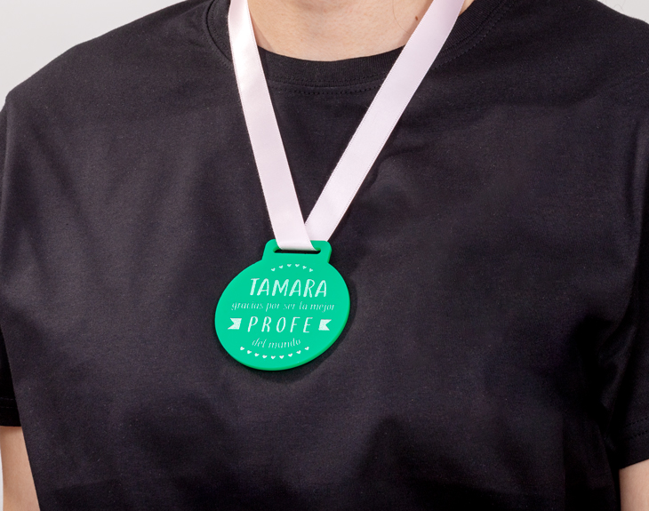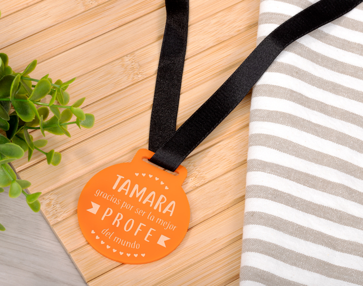 Para ese profe que lo ha dado todo, se merece una medalla que lo diga bien claro: ¡el mejor del mundo! Si quieres tener un detalle único, emotivo y lleno de significado al final del curso, esta medalla personalizada “Mejor Profe del Mundo” es justo lo que estás buscando. Disponible en dos materiales —madera o metacrilato—, esta medalla circular tiene un diseño especial pensado para homenajear a esos profes que dejan huella en cada lección, que acompañan, enseñan y marcan la diferencia con vocación y cariño. Incluye cuerda para colgar y entregarla con todos los honores en ese último día de clase. ¡Imagina su cara al recibirla delante de todos sus alumnos! Y para que sea aún más especial, puedes personalizarla con su nombre en el área de personalización. Solo tienes que añadir el producto al carrito, escribir el texto que quieras, ¡y nosotros lo grabamos! Un regalo original para profes que han hecho del aula un lugar inolvidable. Diámetro: 7 centímetros. Material: metacrilato o madera.